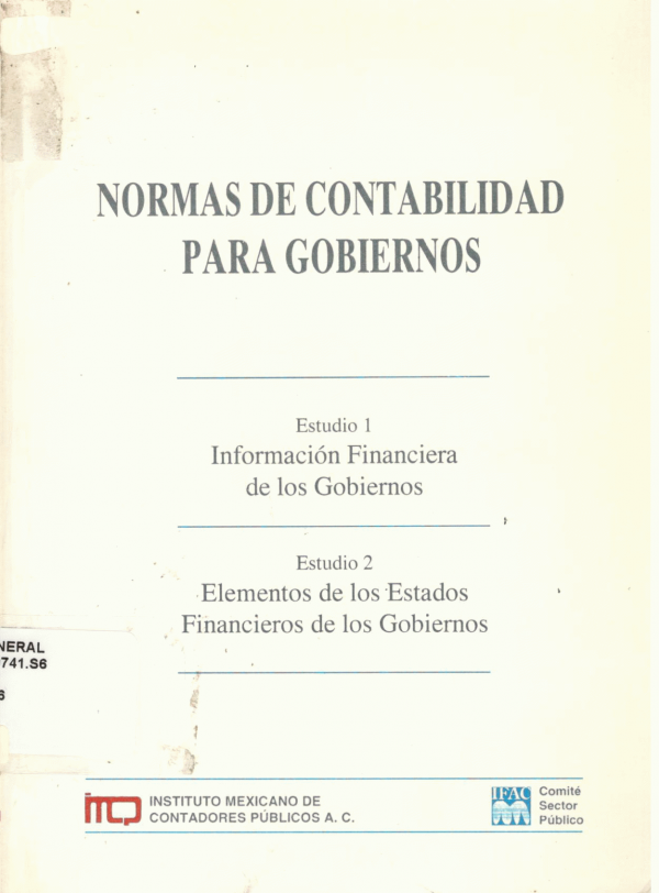 Normas de contabilidad para gobiernos : estudio I información financiera de los gobiernos, estudio II elementos de los estados financieros de los gobiernos.