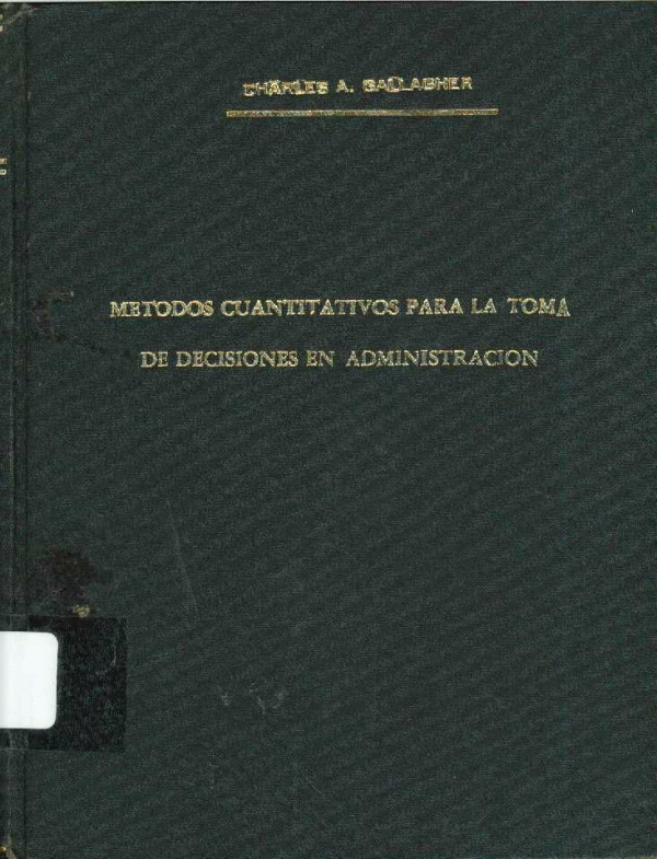 Métodos cuantitativos para la toma de decisiones en administración / Charles A. Gallagher, Hugh J. Watson ; traducción Marcia González Osuna ; revisión técnica Julio Alonso Cruz.