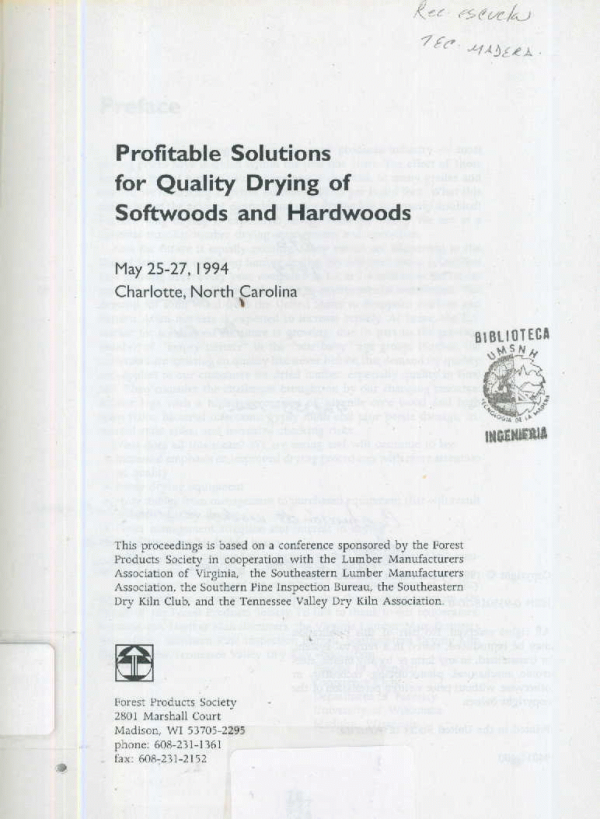 Profitable Solutions for Quality Drying of Softwoods and Hardwoods : May 25-27, 1994, Charlotte, North Carolina.