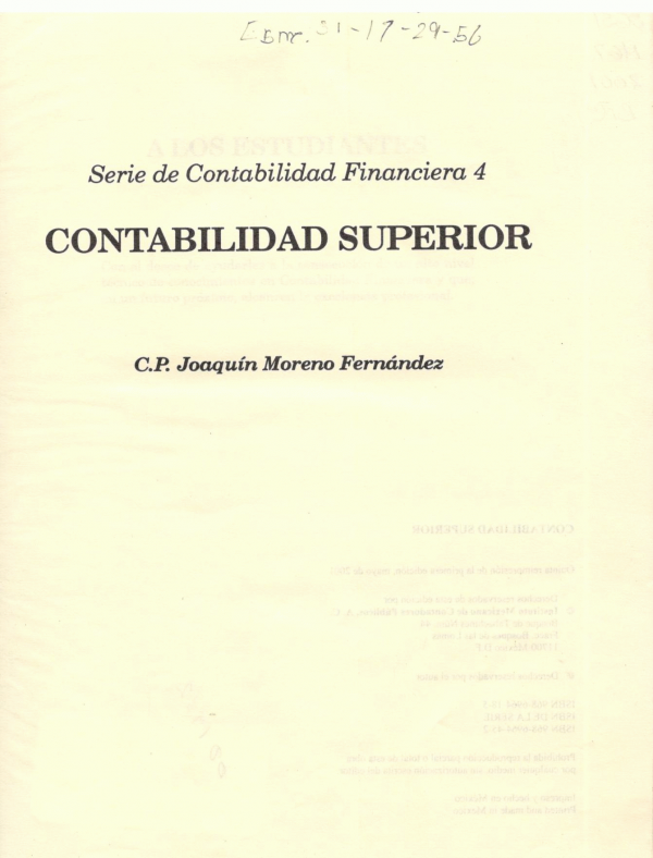 Contabilidad superior / Joaquín Moreno Fernández. by Series: Serie de Contabilidad Financiera ; no. 4